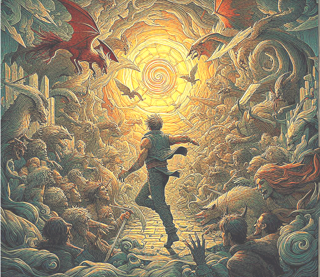 A whirlwind of chaos encircles his path,